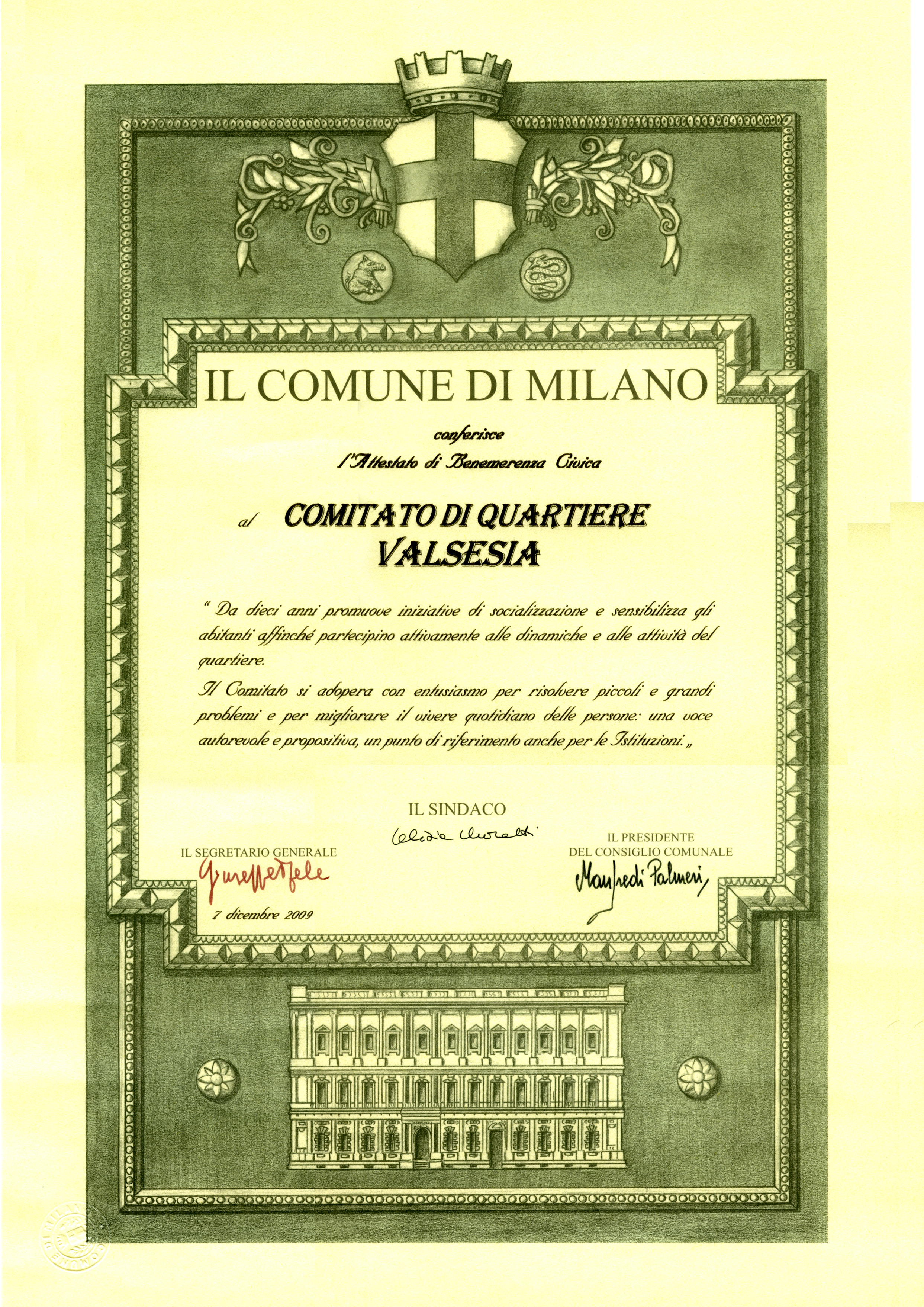Nel 2009 il Comitato ha ricevuto dal Comune di Milano l'Attestato di Benemerenza Civica, più conosciuto come "Ambrogino", con la seguente motivazione: